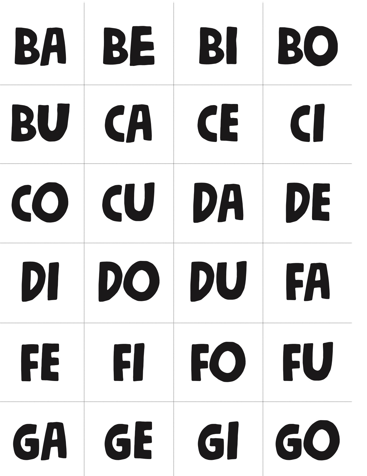 Le flashcards, le sillabe e le lettere sono utilissime per proporre attività e giochi in classe, in particolare con gli studenti analfabeti o debolmente alfabetizzati.