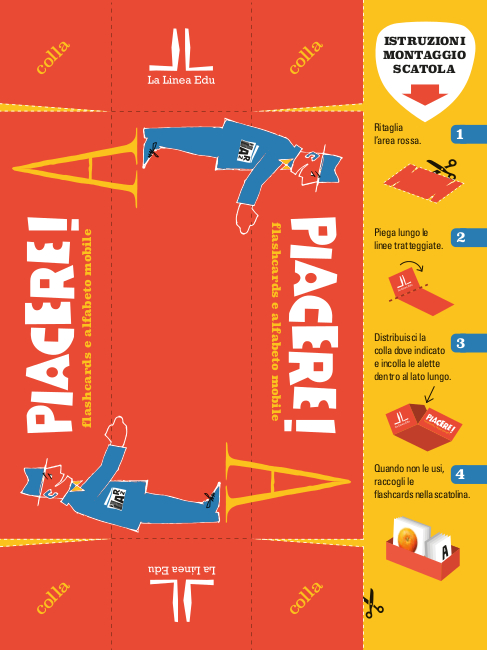 Una volta ritagliata, la copertina diventa una pratica scatolina dove raccogliere tutte le flashcards.